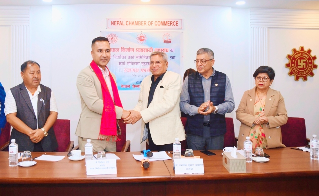 नेपाल चेम्बरद्धारा निर्माण व्यवसायी महासंघका नवनिर्वाचित पदाधिकारीहरुको स्वागत