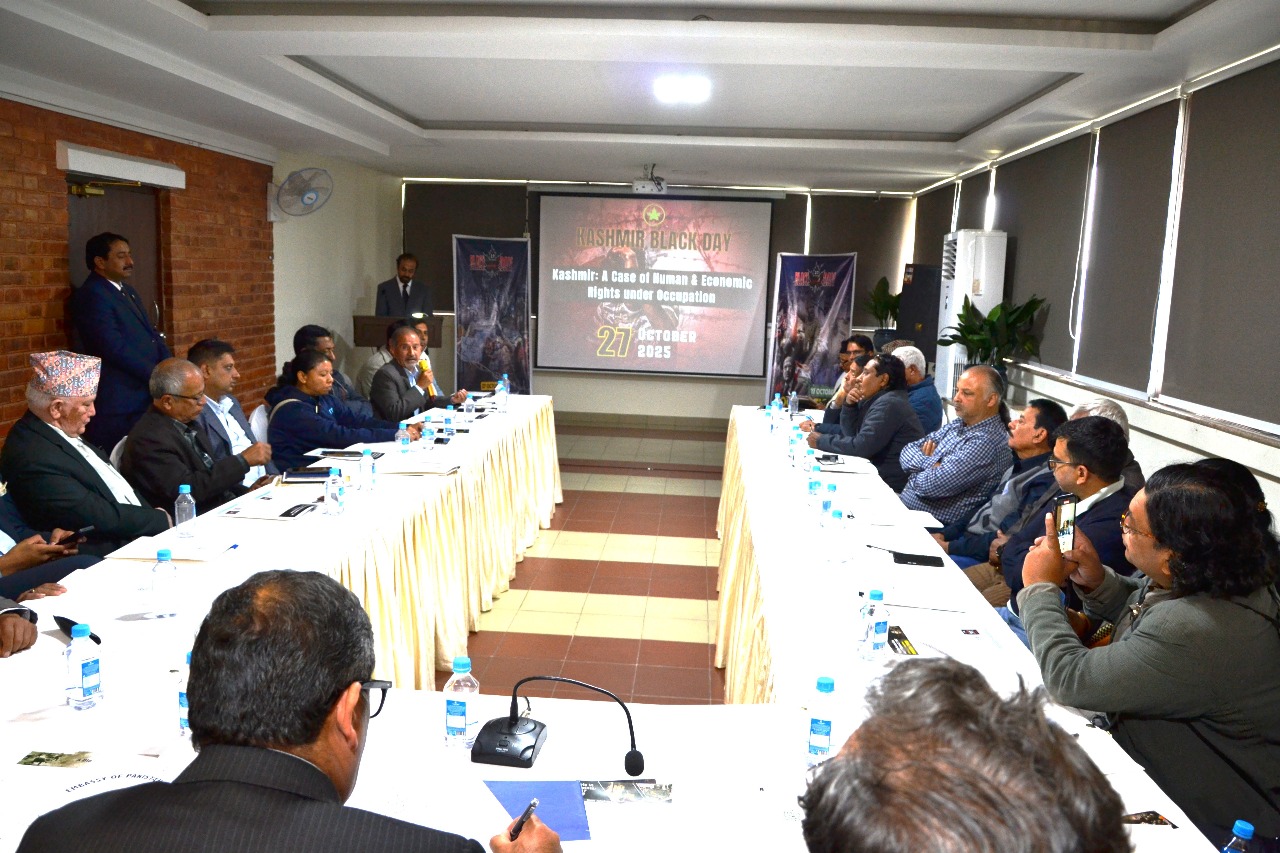 The Embassy of Pakistan in Kathmandu organized a talk programme to mark Kashmir Black Day titled “Kashmir – A Case of Human and Economic Rights under Occupation.” The event commemorated 78 years since October 27, 1947, when Indian forces landed in Srinagar — an act described by Pakistan as a violation of international law and the beginning of one of the world’s longest-standing disputes.