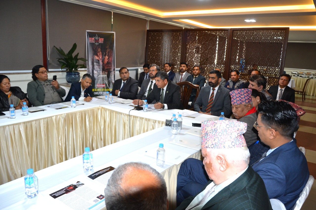 Concluding the session, H.E. Abrar H. Hashmi, Ambassador of Pakistan to Nepal, reiterated Pakistan’s firm commitment to the cause of Kashmir and underscored that the people of IIOJK possess an inalienable right to self-determination. He noted that political, economic, and other rights of Kashmiris have been systematically curtailed, adding that India’s use of draconian laws and suppression of freedoms had effectively turned the region into a “large prison.”
