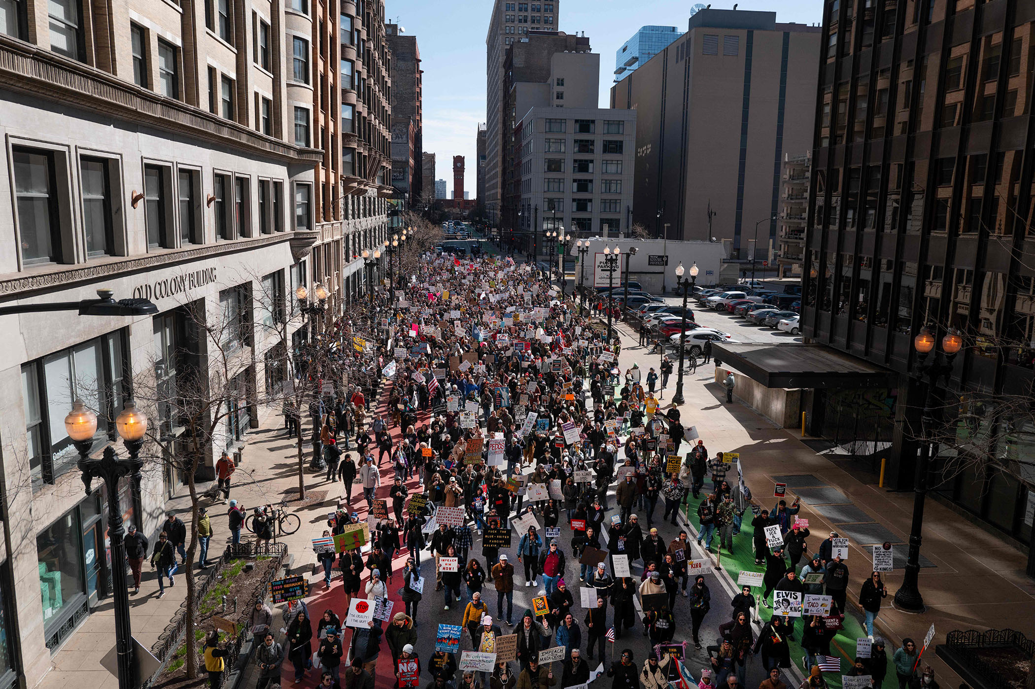 प्रदर्शनमा सहभागीले ट्रम्पको नेतृत्वप्रति तीव्र असन्तुष्टि जनाएका छन् ।