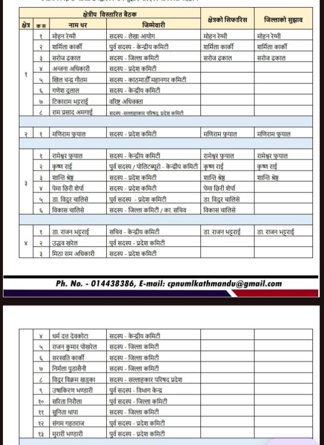 यि हुन काठमाडौ एमालेमा संसदका लागी सीफारीस भएका दश वटौं क्षेत्रका नामावली
